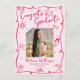 Be proud, rejoice and showcase this milestone of your favorite grad! Send out this quirky, whimsical, simple, modern, personalized photo collage announcement card for an event to remember. Fun, red handwritten script typography and hand drawn graduation icon sketch doodles, along with your custom photo, overlay a light pink background. On the back, light pink and white hand drawn doodles and your personalized copy overlay a red pink background. Personalize the custom text with your grad’s photo, name, school and class year on the front. Add your personal note, next school she’s attending, party info, etc. on the back. Matching invites, thank you cards, cap toppers, napkins, plates and other graduation goodies are also available in this trendy and stylish collection. Guaranteed to add stylish fun to their special occasion!
