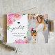 Share your achievement with a customizable botanical photo graduation announcement featuring watercolor pink dahlia flowers. Add your own photo and details for a personal, elegant touch. Perfect for high school or college graduates, this floral graduation announcement creates a soft, stylish way to celebrate and share your milestone with friends and family.