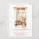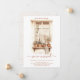 Anuncia a tus amigos y familiares que te has mudado a una nueva casa. Esta estantería de escalera de estilo boho cálido y terrenal con plantas y otros objetos de estantería para el hogar, es cálida y acogedora, con plantas en macetas y telas. Personaliza con la dirección de tu nuevo hogar. La parte posterior del anuncio presenta un fondo de madera blanqueada rústica, con plantas en macetas y una linterna exterior.
