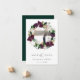 Moderna y elegante corona de ciruela morada y marfil floral, Foto Guardar la tarjeta de fecha. Wreath presenta abundante vegetación verde y dorada, hermosas flores moradas oscuras y blancas de marfil. Diseño de tipografía elegante y sencillo. Se puede personalizar el color de respaldo, mostrado en verde esmeralda rico.