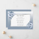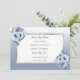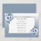 Una elegante boda Guardar la tarjeta de fecha. Marco falso plateado y blanco con flores de color agua, rosas en tonos azules. Plantillas para los nombres, fecha y lugar del boda. Un degradado azul polvoriento de moda, fondo oscuro en el frente, texto gris oscuro. Fondo azul polvoriento.