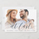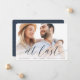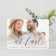 Anuncie su compromiso con estas bellas y minimalistas tarjetas de purga completa con una foto horizontal o orientada al paisaje con "por fin" colocada en polvorientas letras manuscritas azul marino. Personalice su invitación, nombres y detalles adicionales.