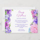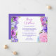 La tarjeta de anuncio de boda de posposición de cambio de planes de flores moradas de paisley presenta elegantes flores de acuarela rosadas y moradas con acentos modernos de paisley y mandala en un fondo blanco con la información de posposición de cambio de planes de flores moradas de paisley en el centro. Personalice editando el texto en las casillas de texto. Diseñado para usted por Evco Studio www.zazzle.com/store/evcostudio