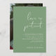 Con todas las restricciones pandémicas y el protocolo de seguridad, notifique a sus amigos y seres queridos a su boda el aplazamiento con esta moderna tarjeta de invitación minimalista diciendo que "el amor es paciente" en letras de caligrafía y tema de color verde sabio. También puede personalizar la foto en la parte posterior.