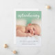 Diseño sencillo y moderno para tus anuncios de nacimiento con una foto de sangre completa con tipografía escrita a mano en blanco. Personaliza con el nombre del bebé, la fecha de nacimiento, las estadísticas de nacimiento y los nombres de los padres.