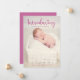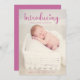 "Presentando" en texto elegante con letras a mano para mostrar el tipo de letra rosado. La foto del bebé es la estrella en esta tarjeta de anuncio de nacimiento. Personalice esto reemplazando la foto con su nuevo paquete de fotos de alegría e introduzca su texto personalizado personalizado.