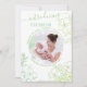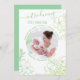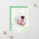 Tarjeta de anuncio de nacimiento fotográfico con delicadas líneas de flores dibujadas y follaje, escritura manuscrita y tipografía caprichosa. La plantilla está configurada para que agregue una foto de bebé o una imagen familiar con su recién nacido. También puede agregar las estadísticas y nombres de nacimiento de su bebé, que se cursan automáticamente en la parte superior e inferior de la imagen. El diseño botánico y la tipografía tienen una paleta de colores en tonos verdes modernos.
