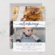 Elegante invitación de bebé con presentación escrita en un adorable guion azul marino. Añada el nombre y los datos de nacimiento de su bebé en letras de la marina. Añadir una foto adicional al otro lado.