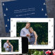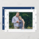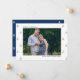 Sube tu foto a esta tarjeta de invitación de embarazo de vacaciones limpia y minimalista. La plantilla de fotos está configurada para que agregue la imagen al frente, en formato horizontal, así como el mensaje que aparece en la parte posterior. El texto del frente es totalmente editable y actualmente dice "Feliz Navidad de nuestra familia de tres hijos". Por supuesto, puede personalizar a Felices Fiestas y familia de cinco, por ejemplo, o lo que sea que se ajuste a sus necesidades. El diseño tiene un broche de navidad y una paleta de colores modernos de azul, gris y blanco de medianoche.