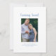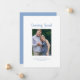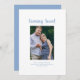 Foto tarjeta de invitación de embarazo con la leyenda "coming soon!" escrita en el cepillo azul. La redacción de la invitación es totalmente editable y actualmente dice "esperamos un bebé. El bebé [apellido] debe [fecha de vencimiento] amar [sus nombres]". El dorso de la tarjeta es sencillo, en azul. Diseño sencillo, fresco y moderno para que todo el mundo sepa lo que espera.