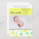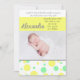 Estas invitaciones presentan una serie de puntos de polka amarillo y verde menta soleados con acentos grises y texto de coordinación. La manera perfecta de anunciar con orgullo la llegada de su pequeño. ¡Estos colores neutrales en género son geniales para niños, chicas y gemelos! Puede personalizar fácilmente con sus detalles específicos y su foto en esta página. Los estilos, tamaños y colores de las fuentes también se pueden cambiar, si se desea, haciendo clic en "personalizar más adelante". Son parte de una colección y tienen accesorios que coinciden. También vienen en una variedad de otros colores. Por favor, asegúrese de seguirnos aquí en Zazzle para obtener nuevas actualizaciones de productos. ¡Gracias por su interés en SapphireDesigns!