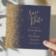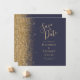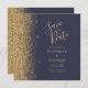 El borde izquierdo de esta elegante y moderna boda, salvo la tarjeta de fecha, tiene un borde purpurina falso de oro. El texto del personalizable combina la escritura a mano de color dorado pálido, el copperplate y las letras cursivas en un fondo azul oscuro. En el reverso, el azul oscuro y el oro combinan a la perfección.