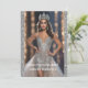 Esta tarjeta plana de invitación se muestra en un diseño de reina de concurso y tiene un aspecto purpurina de imitación plateado divertido y llamativo en el borde de la fotografía. Personalice este elemento con su nombre o título y cambie la foto de ejemplo a la suya. Imagen de stock