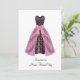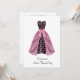 Invitación de Quinceañera con vestido rosa y negro de damasco.