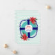 Esta tarjeta de nueva dirección navideña tiene un diseño náutico con un salvavidas turquesa y azul marino decorado con poinsettias rojas. Las rayas blancas y aqua añaden un toque playero y costero, sugiriendo un traslado al sur, posiblemente a las playas de Florida. El texto de ejemplo en la parte delantera de la tarjeta dice: "Feliz Navidad desde nuestro NUEVO HOGAR" y se puede cambiar a las palabras que desee en la plantilla de personalización. El texto en el reverso de la tarjeta también se puede revisar fácilmente. Esta tarjeta de cambio de dirección es parte de nuestra Colección de Anuncios de Mudanza Navideña, que también incluye una tarjeta de saludo navideña, dos tamaños de tarjetas planas con sobres, una postal y una etiqueta de dirección de remitente en el mismo diseño.