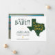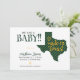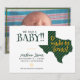 ¡Anunciando el último bebé hecho en Texas! Que todos sepan cuando su pequeño llegue con esta elegante invitación en colores para las principales escuelas de Texas. En la parte delantera hay espacio para el nombre del bebé y los detalles de su nacimiento, junto con sus nombres. Todo se sienta al lado de una gran forma de estado de Texas a rayas. Parte posterior de la imagen horizontal. Productos a juego disponibles.
