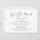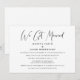 Invitación elegante de fuga o boda pequeña y recepción para informar a familiares y amigos que se fugaron, y para invitarlos a una recepción o fiesta después de la boda. "Nos Casamos" está escrito en una tipografía elegante y puedes agregar tus nombres, fecha de la boda y detalles de la invitación a la recepción en tipografía moderna simple.