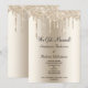 Agregue sus detalles a esta elegante celebración de fiesta de bodas de champán con purpurina que gotea después de un anuncio de elopement.