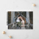 Esta sencilla y elegante tarjeta de anuncio de boda fuga presenta una foto de boda personal en la parte delantera, con las palabras "recién casados" en escritura rústica y blanca a mano. La parte trasera de la tarjeta tiene espacio para otra foto, además de espacio para detallar los pormenores de la fuga o proporcionar detalles para una recepción o celebración posterior a la boda. Un diseño elegante que es la forma perfecta de hacer saber a amigos y familiares que están recién casados.
