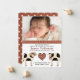 ¡Anuncien la llegada segura de su pequeño más reciente con este lindo anuncio de nacimiento estilo folkart de primo de país! Este adorable diseño de estilo rústico incluye un par de vacas lecheras, gráficos polkadotted de corazón y cinta, con un gran área de fotos para la foto de nacimiento de tu recién nacido. ¡Varios campos de texto personalizables! Enumera los orgullosos nombres de los nuevos padres, y hermanos mayores, junto con la fecha de nacimiento, el peso y la longitud, y por supuesto el nombre y apellido de su pequeño. Perfecto para amigos y familia lejanos, y un gran placer que también apreciarán los cercanos. El reverso es sobre todo sobre la coordinación del patrón de polkadotted en rojo granero profundo, casi marrón y blanco. Perfecto para familias de granjas lecheras, productores de leche o cualquier familia de campo. Reemplazar por su propia fotografía.
