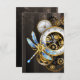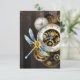 Diales antiguos con artes de oro y latón, decorados con libélula mecánica sobre fondo marrón, rayado. Steampunk.