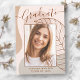 Esta elegante tarjeta de invitación de graduación de moda, cuenta con un delicado guión de caligrafía y hermosas obras de arte abstractas en tonos rosa y taupe. La foto de los graduados resalta la parte delantera de la tarjeta mientras que la parte posterior ofrece espacios de texto personalizados para información sobre la graduación y el viaje futuro.