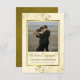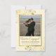 Estas hermosas tarjetas de anuncio de compromiso son una forma maravillosa de hacer saber a tus amigos y familiares que te vas a casar. El elegante diseño dorado y crema presenta tu foto en un marco dorado de lámina falsa rodeado de rizos y espirales dorados ornamentados. El título dice "¡Estamos comprometidos!" con espacio para tus nombres y una breve nota. La parte posterior es de un color dorado profundamente veteado.