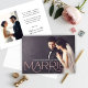 Anuncia tu matrimonio con calidez y glamour utilizando este anuncio de boda romántico con tipografía serif y rosa dorado. La tipografía metálica de rosa dorado de gran tamaño deletrea "Casados" sobre tu foto a sangre, con nombres y fecha establecida elegantemente mostrados encima. La parte trasera incluye una segunda foto y una carta personalizable sobre tu ceremonia privada. Reemplaza ambas fotos y edita todo el texto para crear el recuerdo perfecto.