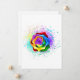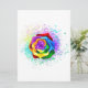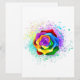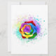 Rosa grande y florecida con pétalos de arcoíris sobre fondo blanco, pintada con salpicaduras de pintura colorida y brillante. 3d