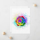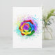 Rosa grande y floreciente con pétalos de arco iris sobre fondo blanco, pintado con salpicaduras de pintura colorida y brillante. 3.ª