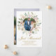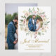 Un elegante marco circular de peonías de color rosa acuarela y rosas crema marfil enmarca este hermoso anuncio de foto de recién casados de primavera. Las ramitas botánicas de hojas de eucalipto verde salvia decoran en medio de la variedad de flores durazno sobre la hermosa escritura cursiva. Estas delicadas tarjetas son perfectas para recién casados que tuvieron una ceremonia íntima y pequeña con familiares cercanos durante este tiempo de distanciamiento social. Una hermosa manera para que una novia y un novio le digan a todos que se escaparon.