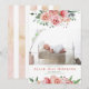 La Rosa floral Personalizado rosada Foto Niña Nacimiento Anuncio es una tarjeta acuarela muy elegante para anunciar el nacimiento de tu nueva princesa. Viene con una sola foto personalizado en la parte delantera, rodeada de elegantes rosas de acuarela y un texto completamente personalizable, que incluye el nombre del bebé, fecha de nacimiento y estadísticas. La parte posterior es una franja acuática rosa pastel.