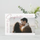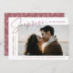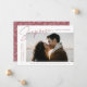 Comparte la noticia de tu sorprendente compromiso con estas elegantes invitaciones de compromiso fotográfico. El diseño incluye la frase "¡Sorpresa, nos comprometimos!" en un moderno guión rosa del desierto y letras modernas. Su foto de compromiso se muestra en la parte central derecha del diseño con sus nombres y fecha de compromiso mostrados a la izquierda. Personalice la invitación de compromiso sorpresa añadiendo más detalles a continuación, como ciudad/estado boda, sitio web boda, etc. La invitación se invierte para mostrar un patrón follaje blanco sobre un fondo de color rosa del desierto.