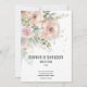 Un moderno y elegante rosa polvoriento y eucalipto verde acuarela florido ramo con su sombra que se derrama suavemente en la invitación y brillantes salpicaduras de oro y elementos, con sus primeros nombres en una fuente moderna con una fecha numérica de boda debajo y un pequeño tipo de letra para los detalles. Este lujoso rosa polvoriento y la vegetación del eucalipto son ideales para cualquier ocasión.