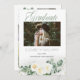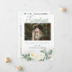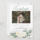 Hermosas rosas blancas y ramos florales de eucalipto cuatro collages de fotos de dos caras de la Invitación de graduación "Graduado". Simplemente agregue las fotos y detalles de su graduación para completar este diseño. Diseño compuesto por Holiday Hearts Designs (derechos reservados).