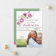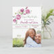 Esta acuarela floral salva la tarjeta de fotos de fecha y es una combinación perfecta de lo contemporáneo y lo tradicional. El diseño es un spray rosa en morado suave y blanco con acentos de color verde sabio. El texto está en ciruela oscura con acentos florales coordinados en la parte posterior. Edita tus nombres, fecha, reemplaza la foto y listo.