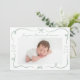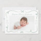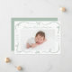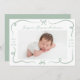Celebra la llegada de tu pequeño con este elegante anuncio de nacimiento del arco verde sabio. La parte frontal muestra la foto horizontal de su bebé enmarcada con cintas de color verde salvia dibujadas a mano y arcos sobre un fondo blanco. El nombre y las estadísticas de nacimiento de su bebé se muestran en un encantador guión escrito a mano. La parte de atrás muestra un collage de tres fotos cuadradas con espacio para tu mensaje personalizado, lo que hace de esto un bigote hermoso y personal para la familia y amigos.