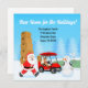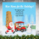 Make your holiday move merry and bright with this playful Christmas moving announcement card! This whimsical illustration features Santa carrying a tall stack of moving boxes labeled “Kitchen,” “Bedroom,” and more, while a cheerful reindeer drives a red golf cart with his own stack of moving boxes. A surprised snowman looks on from the golf course’s 18th hole, adding a touch of humor to the scene.