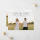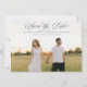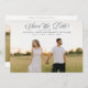 This simple and elegant wedding save the date announcement features your beautiful photo on the full front of the card, with a mix of modern calligraphic script and timeless serif typography. There is room for additional information on the back, including your wedding website and another photo.
