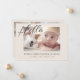Script Baby Photo Modern Birth Anunciation . Tarjeta multifoto de anuncio de nacimiento con lugar para una foto de bebé en la parte delantera y tres fotos más pequeñas en la parte posterior. Diseño moderno mínimo con guión Hola en la parte delantera del anuncio de nacimiento.