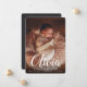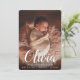 Let baby's name take center stage with these elegant birth announcements, featuring a vertical photo with baby's first name overlaid in white calligraphy script lettering. Personalize with baby's middle and last name and birth stats beneath, and add an additional photo to the back, along with a personal message.