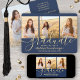 Comparte la alegría de una graduación de secundaria o universitaria con invitaciones descargables de color azul marino y oro del collage de fotos del personalizado 4. Las imágenes y todos los textos de esta plantilla digital son fáciles de personalizar con cualquier detalle de su elección, como información de invitación a fiestas, nombres de padres, honores especiales, título de grado, presupuesto inspirador favorito, información de contacto de graduados o planes para el futuro. (IMAGEN PLACEMENT TIP: Una manera fácil de centrar una foto exactamente como quieres es recortarla antes de subirla al sitio web de Zazzle.) El diseño presenta tipografía moderna, caligrafía de escritura a la moda en moda con un gorro de tablero de mortero y cuatro fotos de tu elección, como imágenes senior o de la ceremonia de inicio. Tenga en cuenta que el oro es color impreso, no Relieve metalizado metálico. Estas elegantes tarjetas de invitación de graduación son una manera elegante de compartir una celebración especial del día con la familia y amigos. ¡Felicitaciones al graduado!