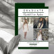 Sencilla, elegante y elegante tres fotos de color verde oscuro, blanco y gris con diseño de invitación de graduación de texto negro con texto "firma" de escritura para el nombre de tu graduación.