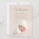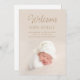 Tarjeta sencilla y moderna de anuncio de nacimiento con 2 fotos y tipografía marrón elegante. Esta tarjeta de anuncio de nacimiento presenta una foto a pantalla completa, el texto "Welcome" en una fuente de escritura elegante, el nombre del bebé y los detalles de nacimiento en la parte delantera. Parte trasera con una foto personalizada y texto de anuncio de nacimiento en marrón. Utilice la plantilla de diseño para crear un momento único y memorable para su familia y amigos. © y.BEE PAPERIE #ZazzleMade #anunciodenacimiento #tarjetadenacimiento #anunciodebebe
