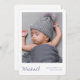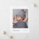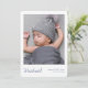 Esta tarjeta plana con anuncio de foto simplemente encantadora presenta un diseño contemporáneo que se personaliza fácilmente con la foto, los detalles y el mensaje de su bebé. Hemos seleccionado esquinas redondeadas como forma de tarjeta predeterminada, pero puede cambiar fácilmente el aspecto a esquinas nítidas, ya que ese aspecto también funciona maravillosamente con este diseño. Pruebe ambas formas en modo de edición y vea qué le atrae. Junto con un amplio espacio para su foto, hemos hecho del primer nombre de su bebé el foco, presentado en un guión moderno que a la vez es ordenado y legible pero también expresivo, cálido y familiar. El texto en ambos lados es un elegante tono oscuro de color azul por defecto. Puede cambiar el color, el tamaño y el tipo de letra de cualquiera de los textos según su gusto. Si prefiere una apariencia más minimalista, puede eliminar sin reemplazar ninguna de nuestras estadísticas de ejemplo, por ejemplo, no desea incluir la hora del día o la longitud. Como los nombres medios y los apellidos de su bebé no se mostrarán en la parte delantera, el espacio de mensajes de la parte trasera es un buen lugar para que usted incluya esa información. Hemos puesto el fondo en ambos lados como transparente, para dejar que el color de su papel simplemente sirva como tono base. Puede cambiar esto eligiendo un color específico en su lugar. En la parte posterior, hemos agregado un texto de marcador de posición para que lo reemplace con su propio mensaje. También puede cambiar el tipo de letra y/o el color del texto. Después de eliminar el texto de nuestro marcador de posición, puede decidir simplemente dejar el texto en blanco, para que pueda agregar un mensaje escrito a mano con sus firmas después de recibir las tarjetas. O puede escribir un mensaje y firmar las tarjetas a mano después de recibirlas, en lugar de introducir sus nombres cuando edite el otro texto. En cualquier funda, no olvide eliminar todo el texto del marcador de posición en la parte posterior, incluyendo los nombres de la muestra, así como los detalles de la muestra y la foto en la parte delantera. El tipo de papel predeterminado, mate, tiene un calor suave y se resiste a la suciedad, por lo que es una gran opción para escribir su propio mensaje. Utiliza las herramientas de diseño intuitivo, tu foto favorita y tu inspiración para personalizar esta tarjeta plana de anuncio de nacimiento de personalizado y hacerlo único tuyo!