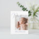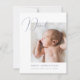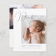En el frente, esta plantilla de anuncios de fotos de diseño sencillo y moderno muestra el nombre de su bebé con detalles debajo de la foto junto con el nombre de su bebé en un cálido y expresivo guión de escritura a mano cerca de la parte superior de la tarjeta que se solapa parcialmente con la foto. Si prefiere una apariencia más minimalista, puede borrar sin reemplazar ninguna de nuestras estadísticas de ejemplo en la parte delantera, por ejemplo, puede que no desee incluir la hora del día o la longitud. Y la longitud del nombre de su bebé por encima de las estadísticas también puede llevarle a dejar de lado algunas de las estadísticas para lograr un aspecto equilibrado entre las dos líneas de texto, etc. Y hablando de equilibrio, podría decidir hacer que parte del texto delantero sea más grande o más pequeño. El color predeterminado para el texto en ambos lados de la tarjeta es un elegante tono oscuro y oscuro de azul. Pero puedes cambiar esto a cualquier color que se ajuste a tu estilo. También hemos incluido espacio para una foto en la parte de atrás. Puede elegir cambiar el tipo de letra, puntuación o color utilizado para varios elementos de texto de este diseño en la parte frontal y/o posterior. Hemos elegido esquinas nítidas estándar como forma predeterminada, pero se puede cambiar fácilmente a esquinas redondeadas, ya que ese aspecto también funciona muy bien con este diseño. Así que revisa ambos estilos y ve cuál te agarra. El fondo predeterminado en ambos lados se establece como transparente para permitir que el color del papel simplemente sirva como tono base. Pero esto se puede cambiar fácilmente, ya sea seleccionando uno de los colores básicos en las herramientas de edición, introduciendo otro número de color en lugar del nuestro, si se tiene en mente un matiz específico que se encontró en su investigación, o mirando la herramienta del espectro de colores y eligiendo algo a la vista. Hemos colocado un texto de marcador de posición en la parte posterior para que lo elimine y lo reemplace con su propio mensaje, con o sin sus nombres, si desea firmar a mano cuando obtenga las tarjetas. Pero también puede optar por borrar el texto de nuestro marcador de posición y dejar la parte posterior completamente en blanco para que pueda escribir un mensaje a mano en cada tarjeta y firmar sus nombres. El tipo de papel predeterminado, mate, tiene un calor suave y se resiste a la suciedad, por lo que es una gran opción para escribir su propio mensaje. Puede editar esto y elegir en su lugar un tipo de papel o semirbrillo. En cualquier funda recuerde que hay una segunda foto así como texto de marcador de posición en la parte posterior y para borrar todo nuestro texto de ejemplo/marcador de posición en ambos lados de la tarjeta y para reemplazar ambas fotos de muestra por la suya propia. Utilice las herramientas de diseño intuitivo, sus fotos favoritas y su inspiración para hacer de esta moda una tarjeta de anuncio de nacimiento moderna única para su uso. Tenemos una selección de otras invitaciones modernas y de diseño para la llegada de bebés, así que por favor visite nuestra tienda para más ideas.
