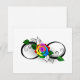 símbolo de infinito con rosa arcoíris sobre fondo blanco.