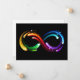 El símbolo de infinito está artísticamente pintado con cometas de arcoíris brillantes, luminosos y de movimiento rápido con largas colas flexibles sobre fondo negro. Infinito en arcoíris.