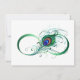 El símbolo del infinito con una pluma de pavo real brillante, verde y artística sobre un fondo blanco. Estilo tatuaje.