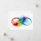 Símbolo de infinito dibujado artísticamente con una hermosa pluma arco iris sobre fondo blanco. Estilo tatuaje.